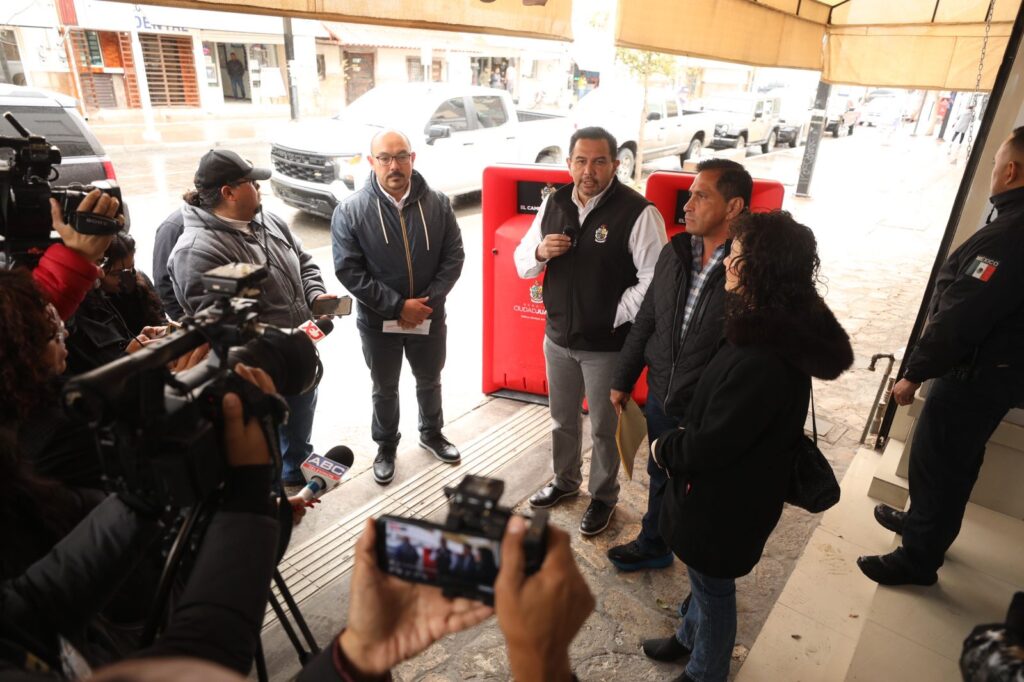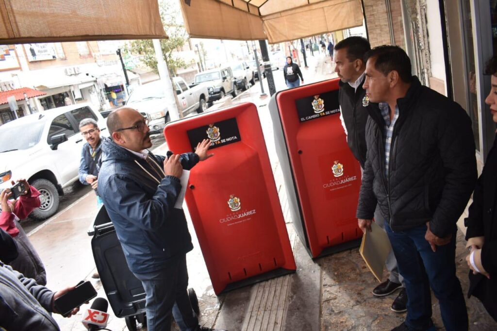 Esta labor, encabezada por el Presidente Municipal, Cruz Pérez Cuéllar arrancó en la avenida Juárez, a unas cuadras del puente internacional Paso del Norte, donde el alcalde dijo que se la colocación de estos contenedores continuará durante las siguientes dos semanas.