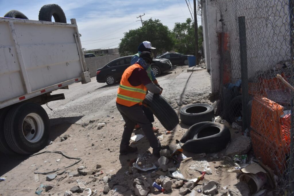 CD. JUAREZ, CHIH.- Como parte del programa permanente de limpieza implementado por el Gobierno Municipal, esta semana se desplegó un operativo intensivo en el suroriente de la ciudad, donde se retiraron más de 950 toneladas de escombro, basura, llantas y tiliches, informó Gibran Solís, director de Limpia.