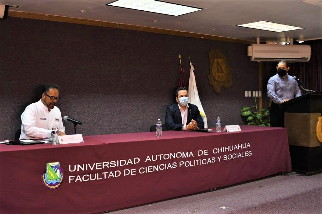 Al participar este martes en el Seminario Permanente de Estudios Electorales organizado por la Facultad de Ciencias Políticas y Sociales, Campus Juárez, de la Universidad Autónoma de Chihuahua, el abanderado de Morena, PT y Nueva Alianza confió en su triunfo rumbo a la gubernatura e invitó a las alumnas y alumnos a prestar un año de servicio en su gobierno para conformar acciones comunitarias que sirvan para ubicar a las vecinas y vecinos dispuestos a aportar sus conocimientos en beneficios de la sociedad.
