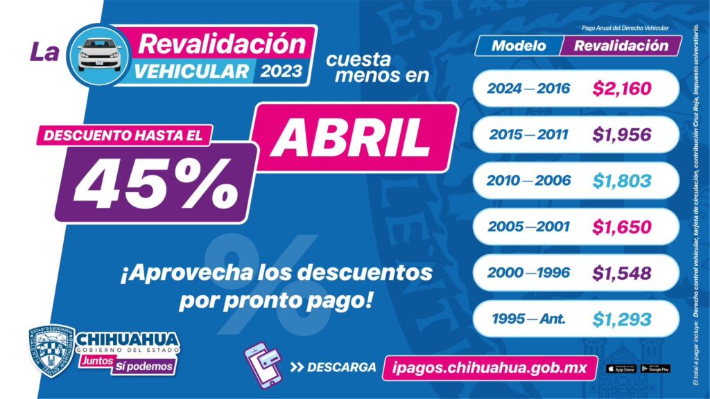 CHIHUAHUA, CHIH.- La Secretaría de Hacienda de Gobierno del Estado invita a la población a que aproveche el descuento que se ofrece durante hasta el día 30 de abril