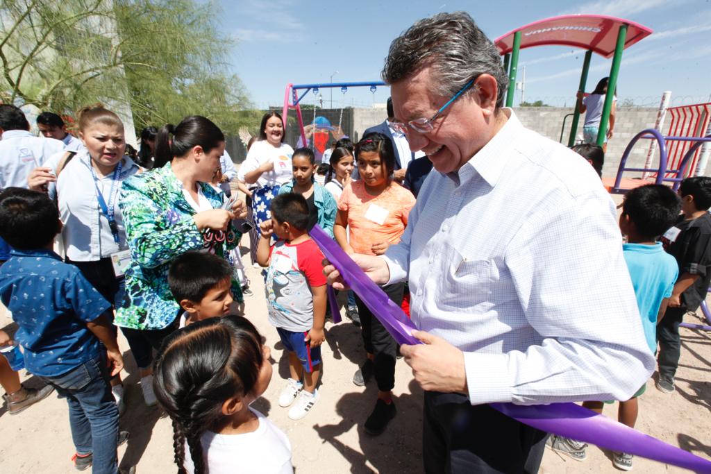 CD. JUAREZ, CHIH.- Durante la inauguración de juegos infantiles y aparatos ejercitadores en colonia Riberas del Bravo Etapa 3, el representante de la Gobernadora Maru Campos Galván en la Zona Norte, Oscar Ibáñez Hernández, invitó a los asistentes a aprovechar los programas estatales de beneficio comunitario para esta zona de la ciudad.