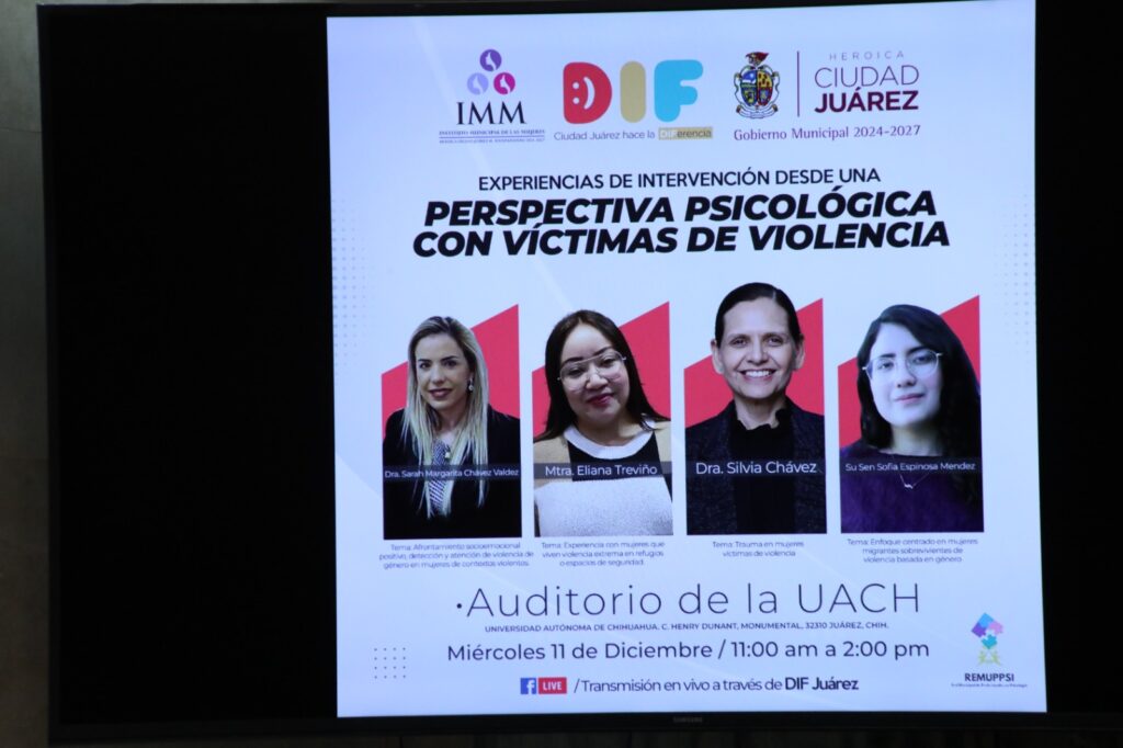 CD. JUAREZ, CHIH.-El Sistema para el Desarrollo Integral de la Familia del Municipio (DIF) y el Instituto Municipal de las Mujeres (IMM), invitan a los profesionistas en psicología a participar en el Foro “Experiencias de Intervención de una Perspectiva Psicológica con Víctimas de Violencia.