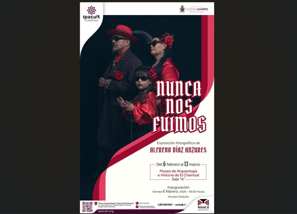 CD. JUAREZ, CHIH.-El Instituto para la Cultura del Municipio de Juárez (IPACULT) inaugurará el próximo viernes 6 de febrero, a las 6:00 de la tarde, la exposición fotográfica “Nunca Nos Fuimos”, en el Museo de Arqueología e Historia de El Chamizal, un proyecto que propone una reflexión visual sobre la identidad fronteriza y la cultura pachuco–chicana.