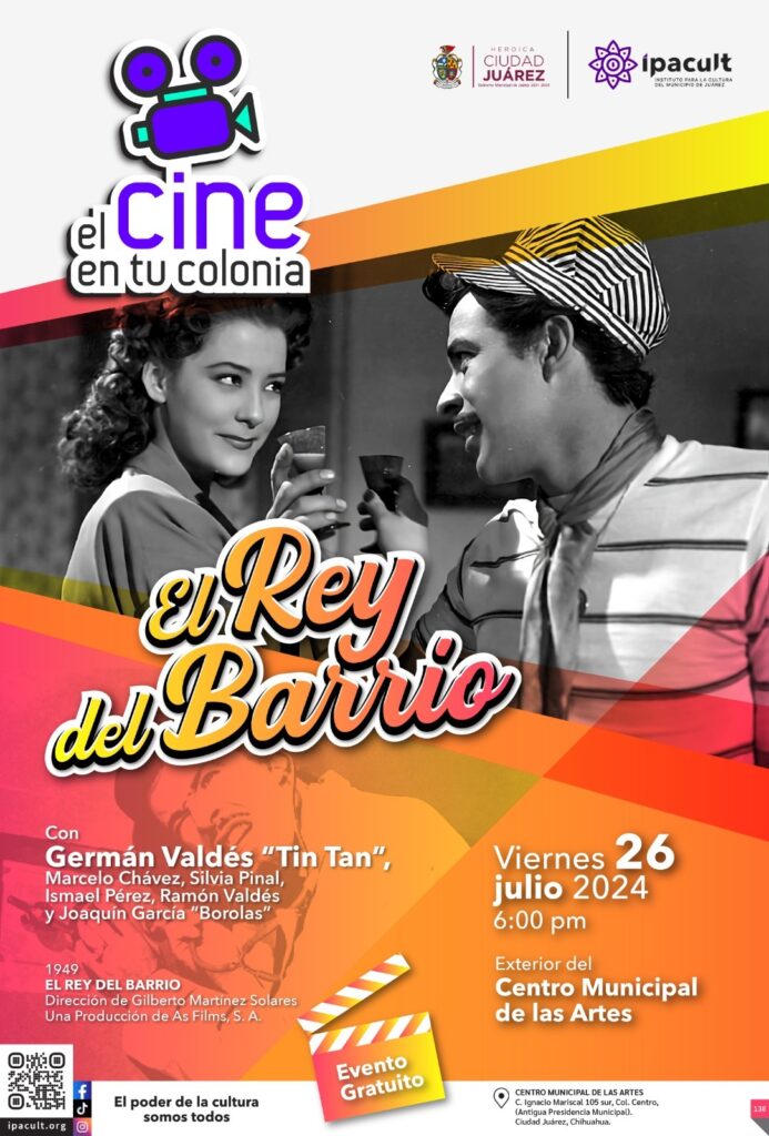 CD. JUAREZ, CHIH.- El Instituto para la Cultura del Municipio de Juárez (IPACULT) invita a la ciudadanía a disfrutar de la clásica película “El rey del barrio” protagonizada por Germán Valdés “Tin Tan” que se exhibirá a las 6:00 de la tarde este viernes 26 de julio en el exterior del Centro Municipal de las Artes (CMA).