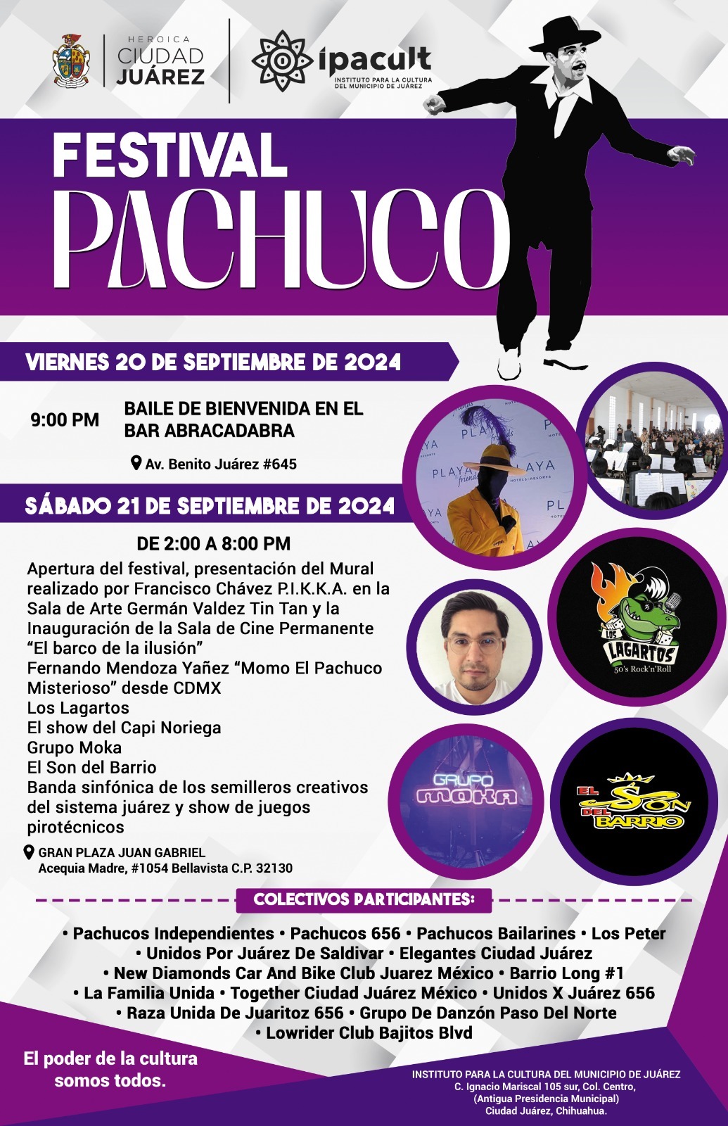 El festival contará con la participación de los colectivos Pachucos Independientes, Pachucos 656, Pachucos Bailarines, Los Peter, Unidos por Juárez de Saldívar, Elegantes Ciudad Juárez, New Diamonds Car and Bike Club Juárez México, Barrio Long #1, La Familia Unida, Together Ciudad Juárez México, Unidos X Juárez 656, Raza Unida de Juaritoz 656, Grupo de Danzón Paso del Norte y Lowrider Club Bajitos Blvd.