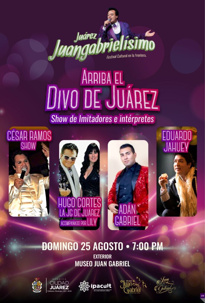 CD. JUAREZ, CHIH.- El Gobierno Municipal, a través del Instituto para la Cultura del Municipio de Juárez (IPACULT), junto con la Casa Juan Gabriel y Museo Juan Gabriel, extienden una cordial invitación a la ciudadanía para disfrutar del evento “Arriba el Divo de Juárez”.