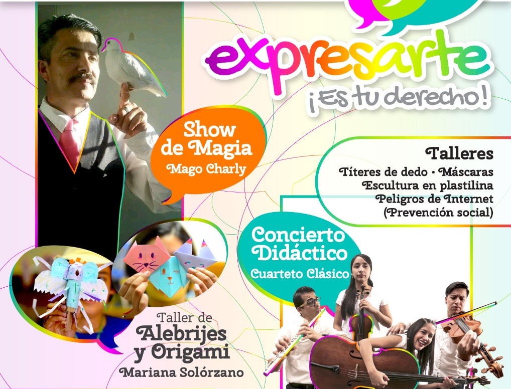 Entre los principales atractivos se encuentran el show de magia del Mago Charly, un concierto didáctico a cargo de un cuarteto clásico, talleres de alebrijes y origami con Mariana Solórzano, breakdance con Freeman, así como actividades de títeres de dedo, máscaras, escultura en plastilina, prevención de los peligros de internet, y dinámicas de educación vial.