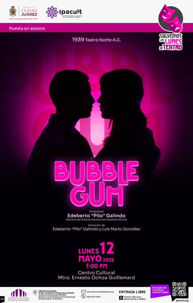 CD. JUAREZ, CHIH.- El Instituto para la Cultura del Municipio de Juárez (IPACULT) continúa impulsando el arte escénico con su programa “Salvemos los lunes de teatro”, y en esta ocasión presentará de forma gratuita la obra “Bubble Gump” el próximo lunes 12 de mayo a las 7:00 de la tarde en el Centro Cultural Ernesto Ochoa Guillemard.