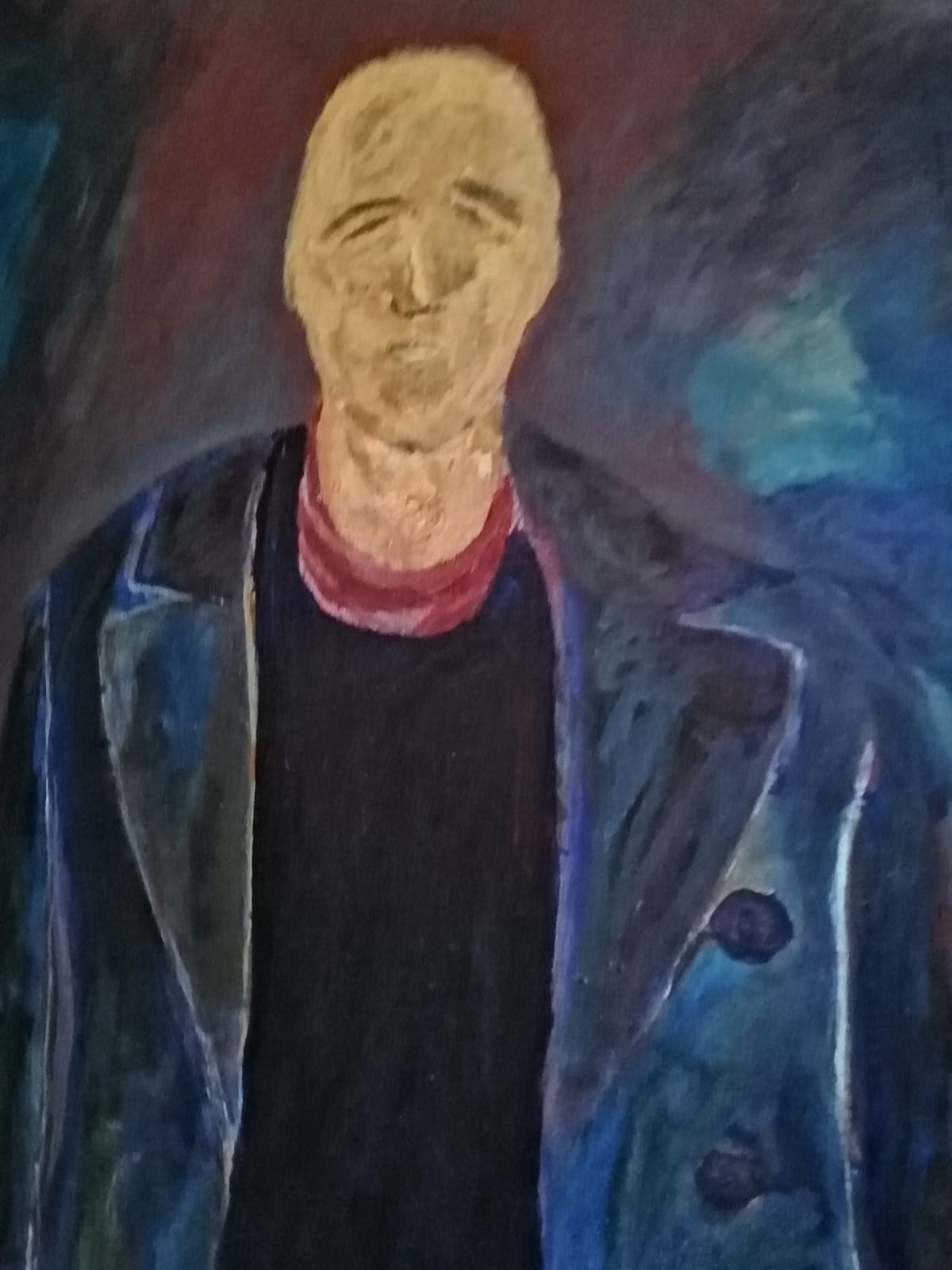 La figura evoca presencia, sombra, introspección. El uso de colores vibrantes sugiere tensión emocional. El contraste entre figura y fondo puede interpretarse como una lucha entre lo interno y lo externo, lo individual y lo colectivo. El estilo pictórico sugiere una búsqueda de identidad en medio del caos, una forma de resistencia visual.