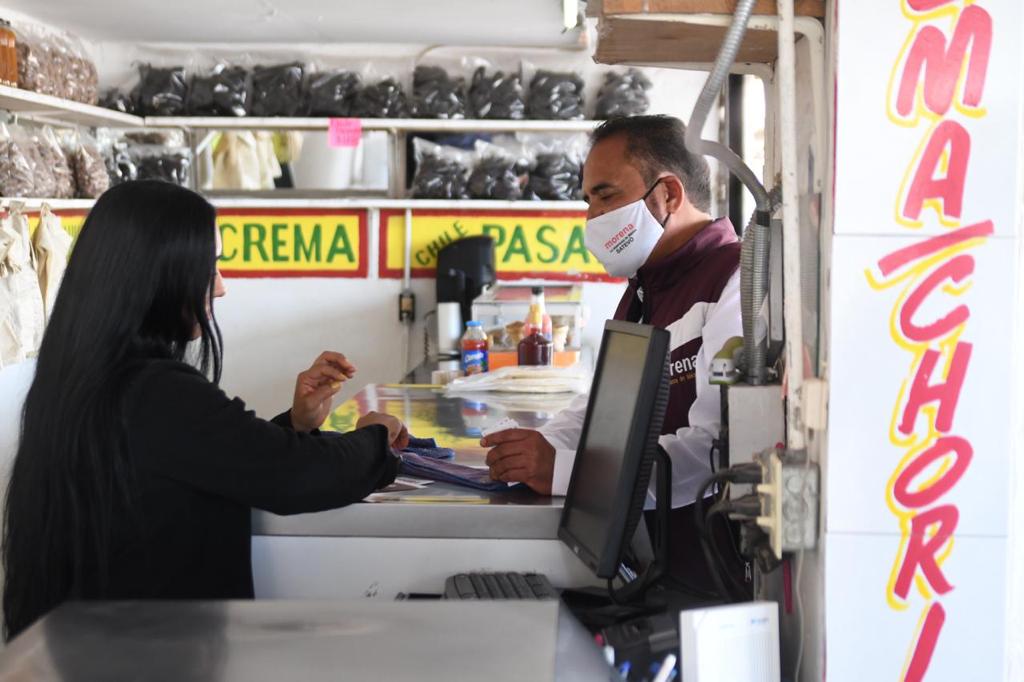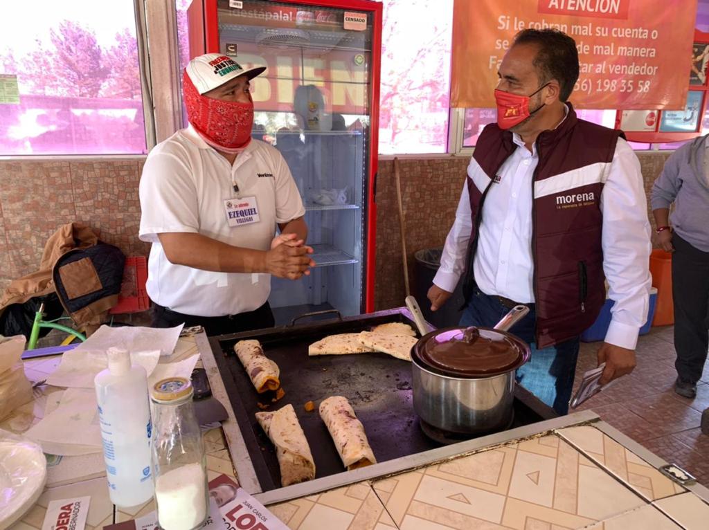 Juan Carlos Loera visitó todos los negocios a su paso, zapaterías, dulcerías, jugueterías, artesanías y por supuesto, los asaderos, donde al final ayudó a su economía y degustó unas ricas quesadillas.