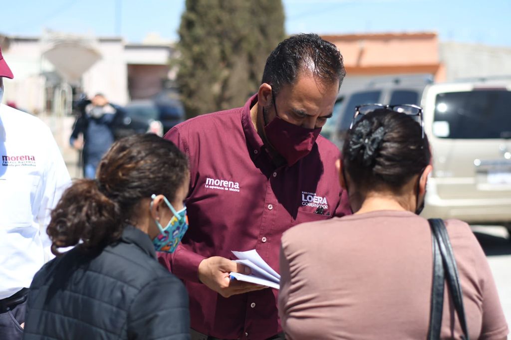 En recorrido casa por casa por las colonias Praderas y Manuel J. Clouthier, acompañado de Daniel Murguía, candidato a diputado federal en el Distrito 1, Juan Carlos Loera reveló que tanto las encuestas telefónicas, como las que son cara a cara, donde está el principal respaldo para los partidos Morena, PT y Nueva Alianza que lo abanderan, lo colocan por encima de sus demás contrincantes.
