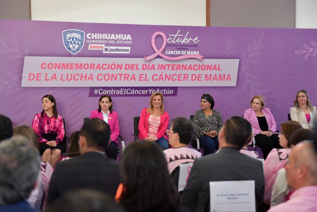 CHIHUAHUA.- Al encabezar la ceremonia de conmemoración por el Día Internacional de la Lucha contra el Cáncer de Mama, la gobernadora Maru Campos resaltó la importancia de seguir generando acciones públicas en beneficio de la salud de las mujeres, para que haya más casos de éxito de chihuahuenses que logran vencer este padecimiento.