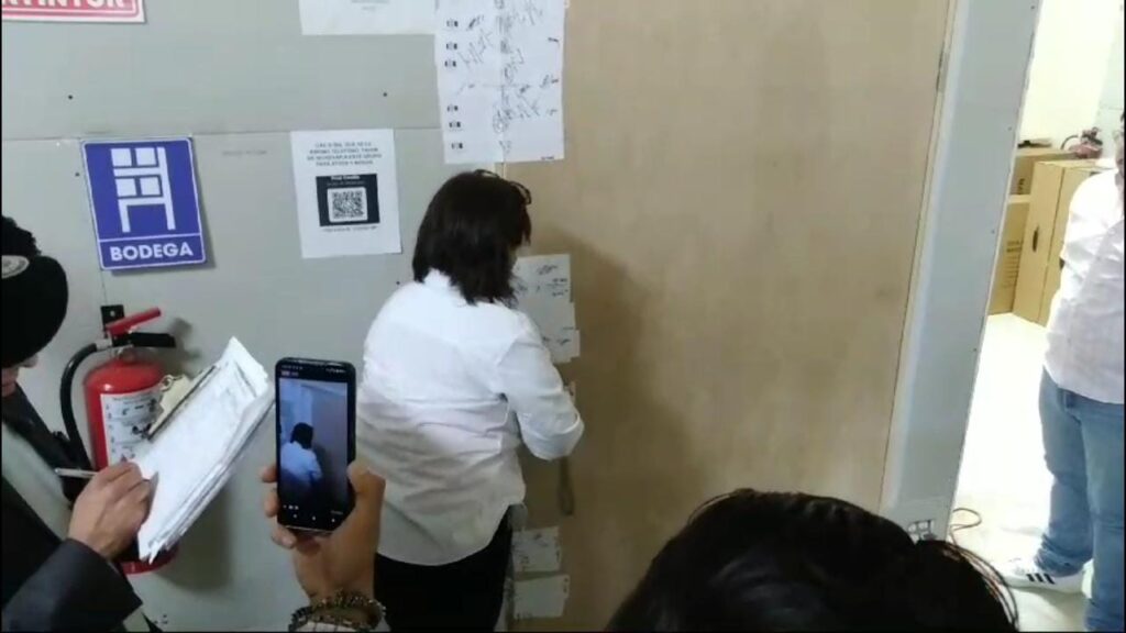 Esta tarde, durante el corte de las 06:00 de la tarde, la Asamblea Municipal Estatal de Juárez (AME), abrió la bodega para resguardar los paquetes electorales, esta misma fue abierta ante los consejeros de los partidos para que verificaran que se encontraba vacía y así evitar algún tipo de fraude electoral.