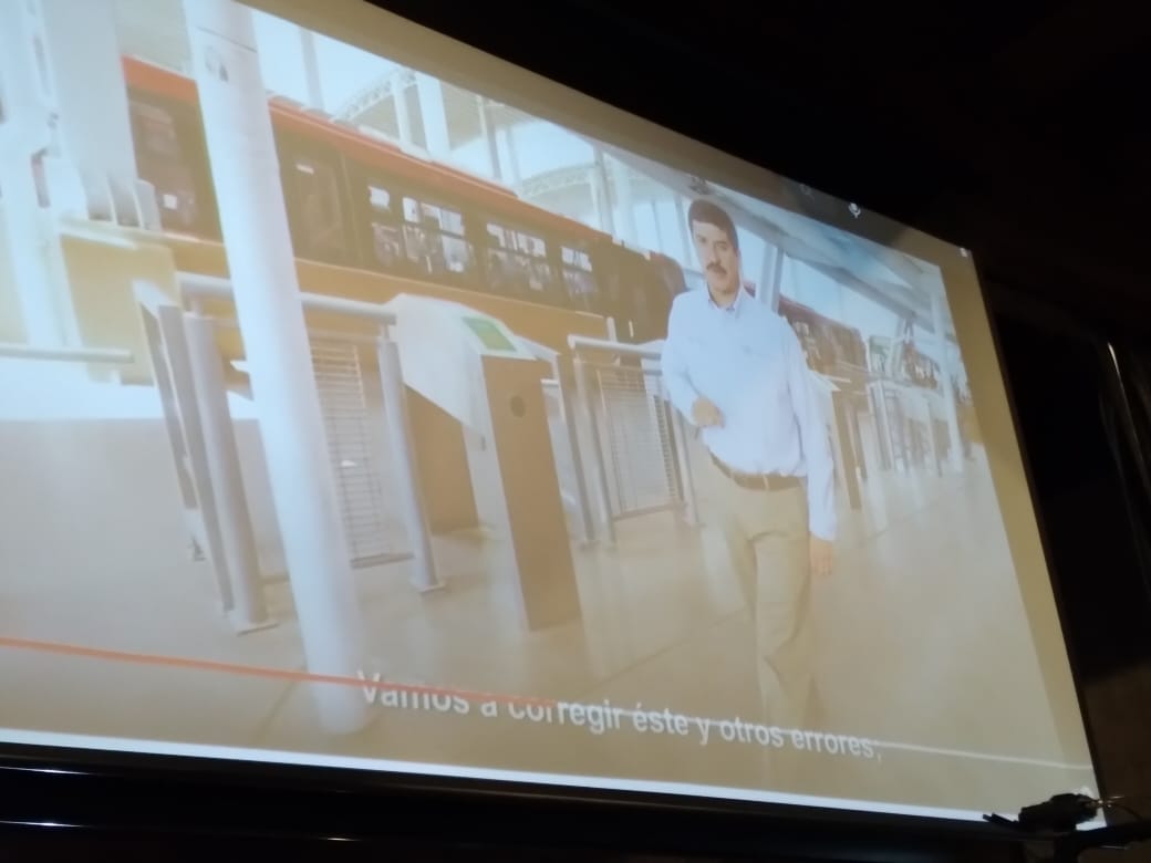 Asimismo, en el foro se proyectó el spot de campaña del entonces candidato y hoy gobernador del estado, Javier Corral, en donde criticaba la constricción de la linea trocal 1, conocida como Vivebus, del ex gobernador Cesar Duarte, donde lo cataloga de ser un monumento a la corrupción e ineptitud.