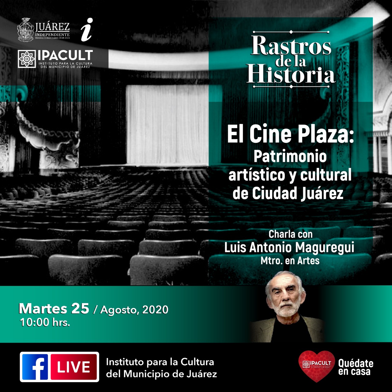 La charla «El Cine Plaza: patrimonio artístico y cultural de Ciudad Juárez», a cargo del Maestro en Artes Luis Antonio Maguregui, será transmitida en vivo a las 10:00 de la mañana a través de Facebook Live.