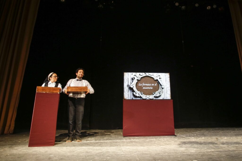 CD. JUAREZ, CHIH.– Con una mezcla de humor, crítica y teatralidad contemporánea, la obra “Falsa conferencia, de la firmeza en el ausencia” se presentó con gran éxito en el Auditorio Cívico Municipal Benito Juárez, logrando una excelente respuesta por parte del público.