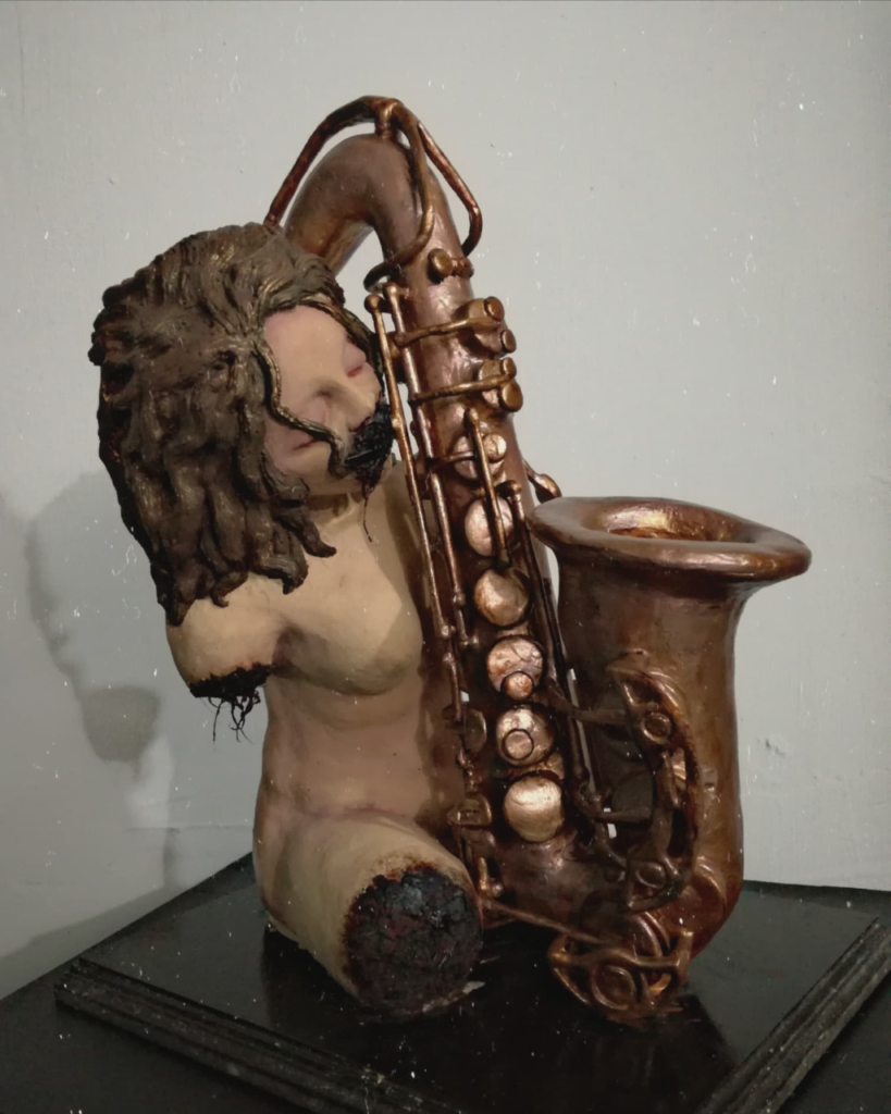 CD. JUAREZ, CHIH.- Lizeth Dávila, miembro del Colectivo Arte Juárez. La escultura se ha vuelto un medio de salida de esos problemas emocionales, no resueltos y situaciones de trauma desde la infancia. Las musas de la sensibilidad de su inspiración, llegan para ella de cualquier lado, una emoción de un instante, una fotografía, la soledad, una película, la música, el maquillaje, la escuela, el trabajo, la vida, la existencia, etc.