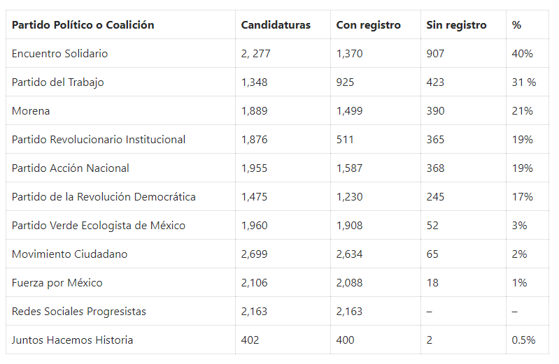 En tanto, las coaliciones locales hay dos mil 853 contabilidades, con registro dos mil 429 y 424 sin registro, es decir, el 15 por ciento de las candidaturas de coaliciones locales no ha rendido cuentas.