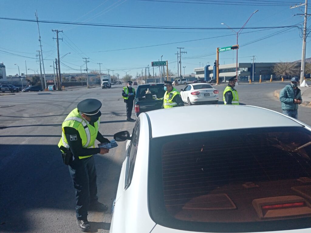 La Coordinación ha reforzado la campaña de “Volante+alcohnol=una mala combinación”, por lo que los agentes continúan con el volanteo en diferentes cruceros, este día acudieron al bulevard Oscar Flores y Ramón Rivera Lara; Plutarco Elías Calles y Ejército Nacional, así como Pérez Serna y Hermanos Escobar, donde invitaron a los automovilistas a ser conscientes.