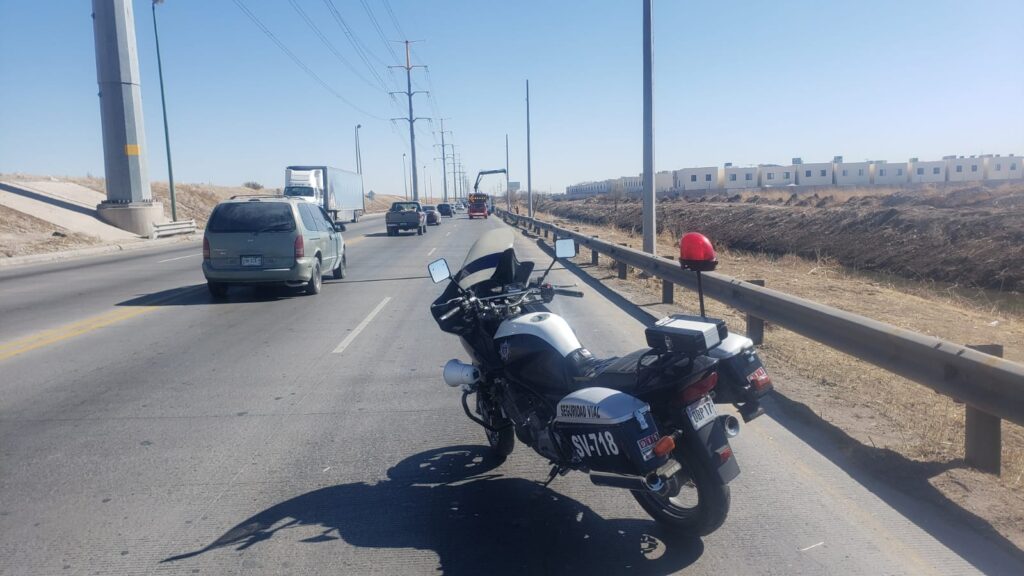 Esto es debido a los trabajos que lleva a cabo la Dirección de Alumbrado Público con algunas luminarias, en el tramo de Francisco Villarreal Torres hasta Libramiento, sector en donde agentes de la corporación realizan el abanderamiento correspondiente.