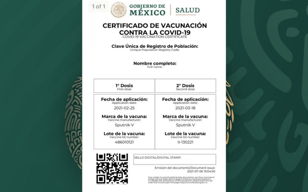 Por ello, dijo, es prioritario que las secretarías de Salud, Gobernación y de Seguridad y Protección Ciudadana, tomen las medidas pertinentes para prevenir, detectar y castigar la falsificación de este certificado de vacunación.