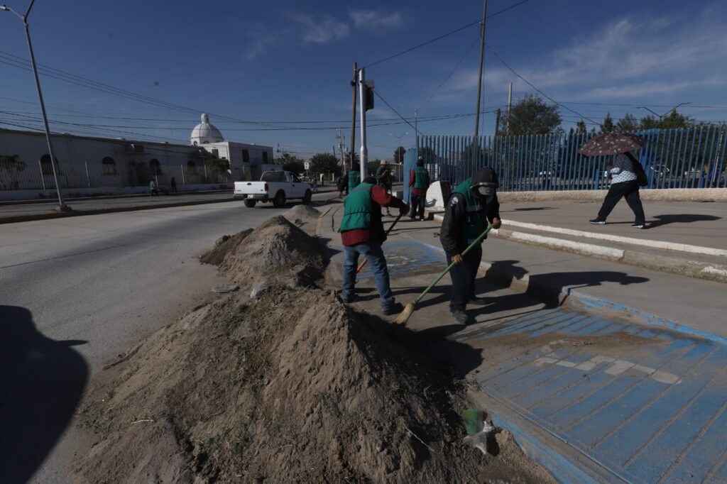 CD. JUAREZ, CHIH.- Como parte del programa cruzada del cambio, que tiene como objetivo mantener una ciudad más limpia, ordenada y segura para todos, la Dirección de Limpia llevó a cabo este martes trabajos de limpieza en el camellón central y laterales de la calle Pedro Meneses Hoyos.