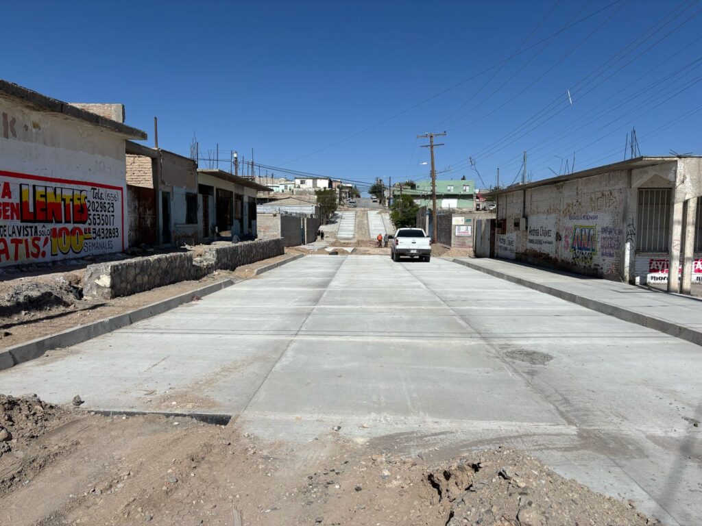 CD. JUAREZ, CHIH.- Como parte de la estrategia para mejorar las condiciones de las vialidades en los distintos sectores de la ciudad, la Dirección General de Obras Públicas reportó tener un avance del 50% en la pavimentación de la calle Dr. Manuel Ruíz, en la colonia Corregidora, en la cual se trabaja con concreto hidráulico.
