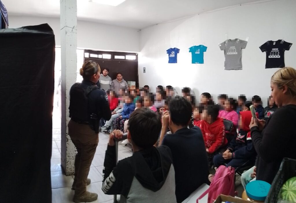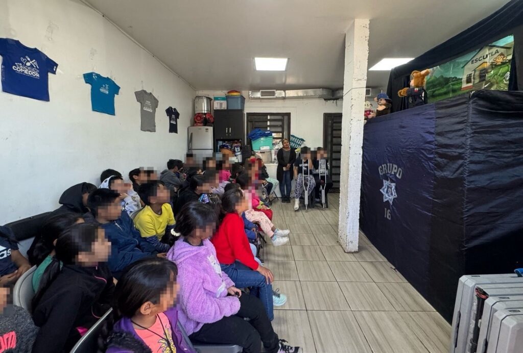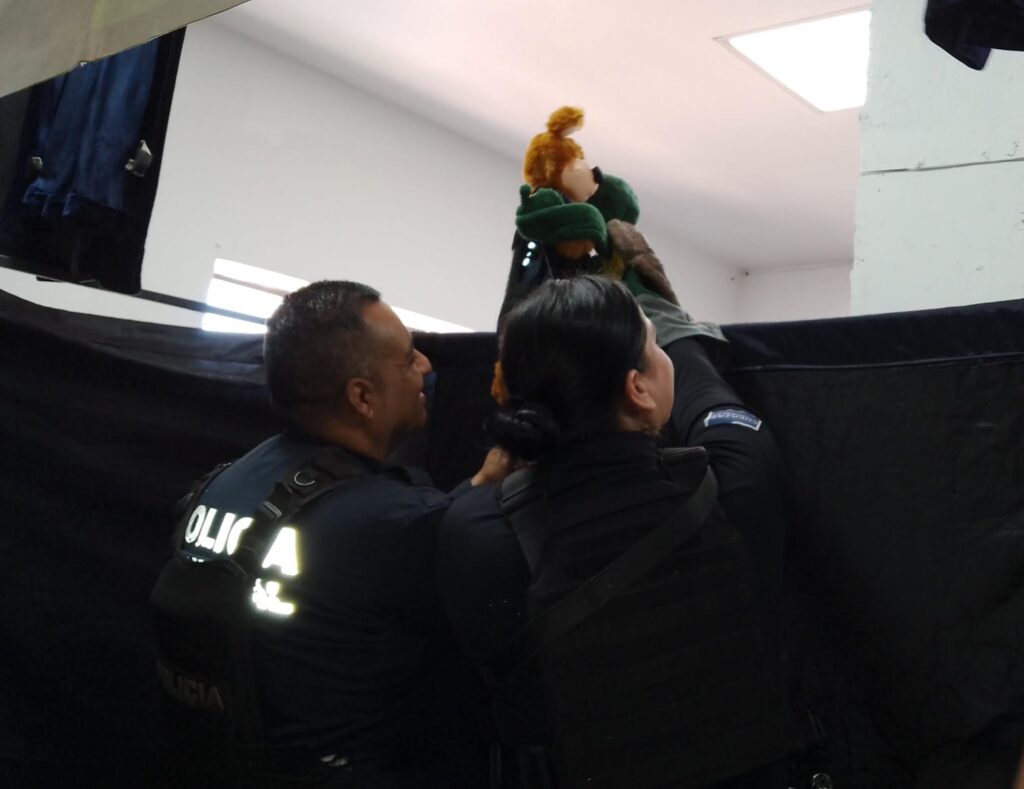 En esta ocasión los elementos acudieron al centro ubicado en el cruce de las calles Hacienda Vargas y Hacienda Oriente, en la colonia Sierra Vista, en donde a través de los personajes del teatrino, se brindó una pequeña función a niños y niñas en situación vulnerable que son atendidos con alimentos y apoyo escolar.