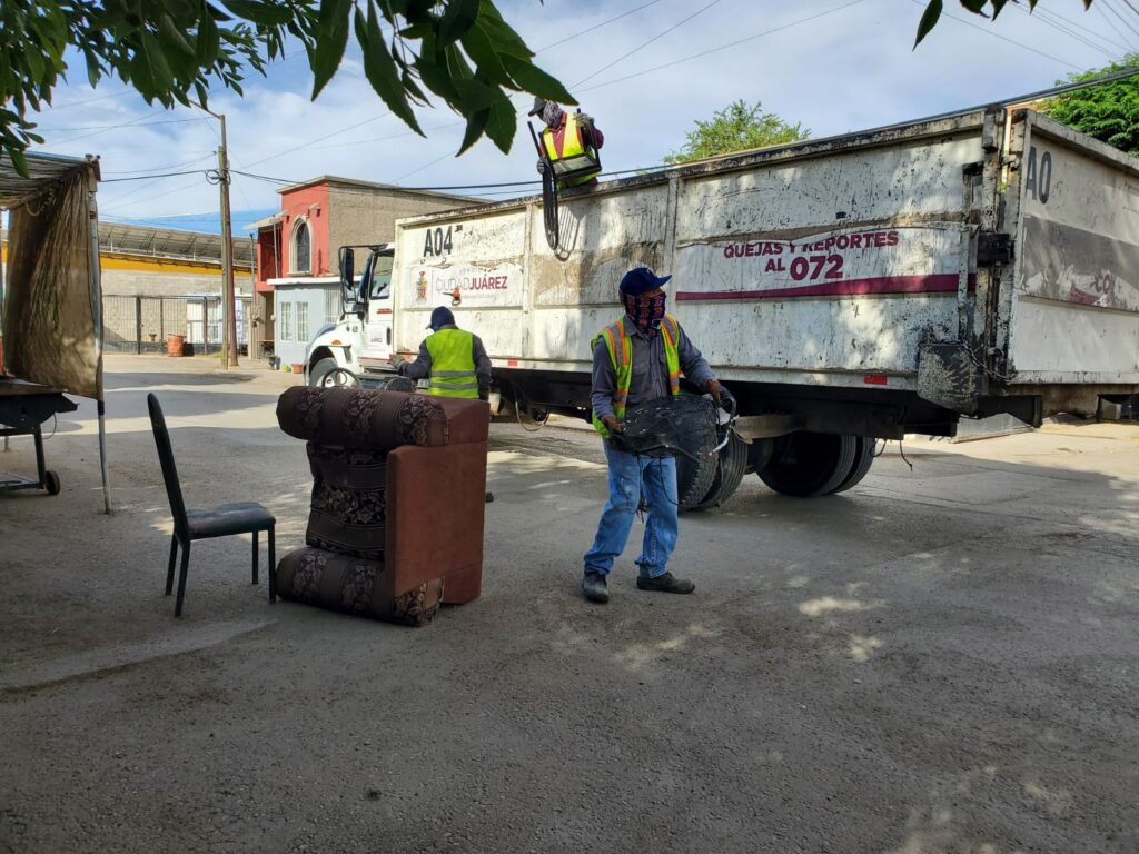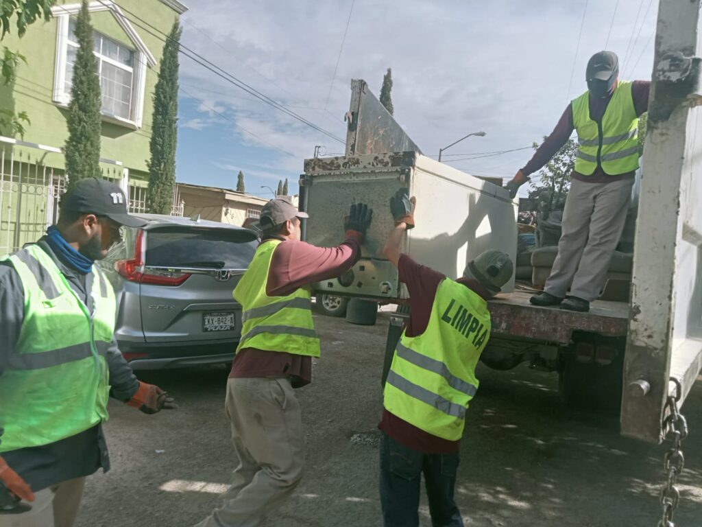 CD. JUAREZ, CHIH.- Personal de la Dirección de Limpia llevó a cabo en la colonia Waterfill Río Bravo un recorrido para recoger los tiliches en apoyo a los vecinos del sector y como parte de la campaña de prevención de la rickettsia, dio a conocer Gibran Solís Kanahan, director de la dependencia.