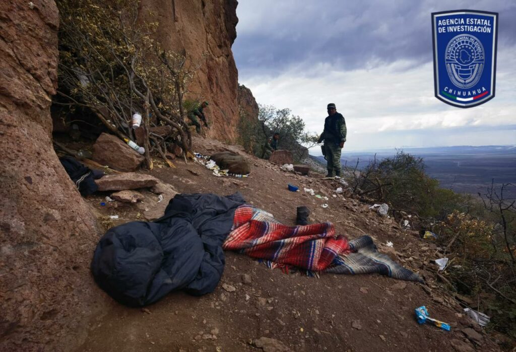 A metros de distancia, en unas cuevas del cerro encontraron campamentos en los que había sleeping, cartuchos útiles de diferentes calibres, ropa, zapatos y camisolas tácticas.