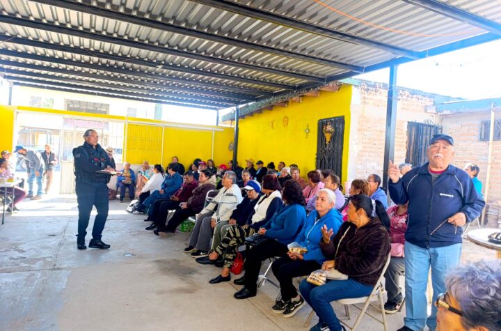 Imparte SSPM plática preventiva sobre fraudes telefónicos a personas adultas en la colonia Las Aztecas