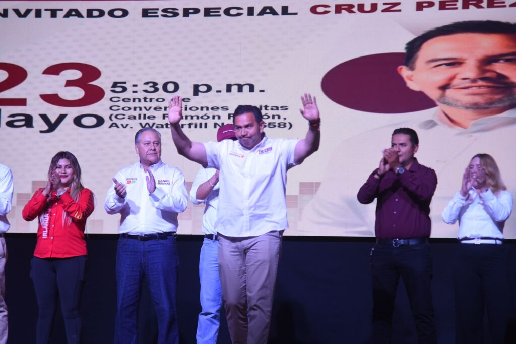 CD. JUAREZ, CHIH.- El candidato a la alcaldía por la coalición “Sigamos Haciendo Historia en Chihuahua”, Cruz Pérez Cuéllar, recibió el respaldo del magisterio durante un evento celebrado en el Centro de Convenciones Anitas.