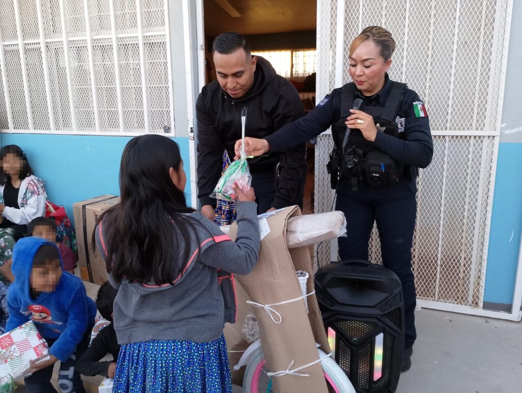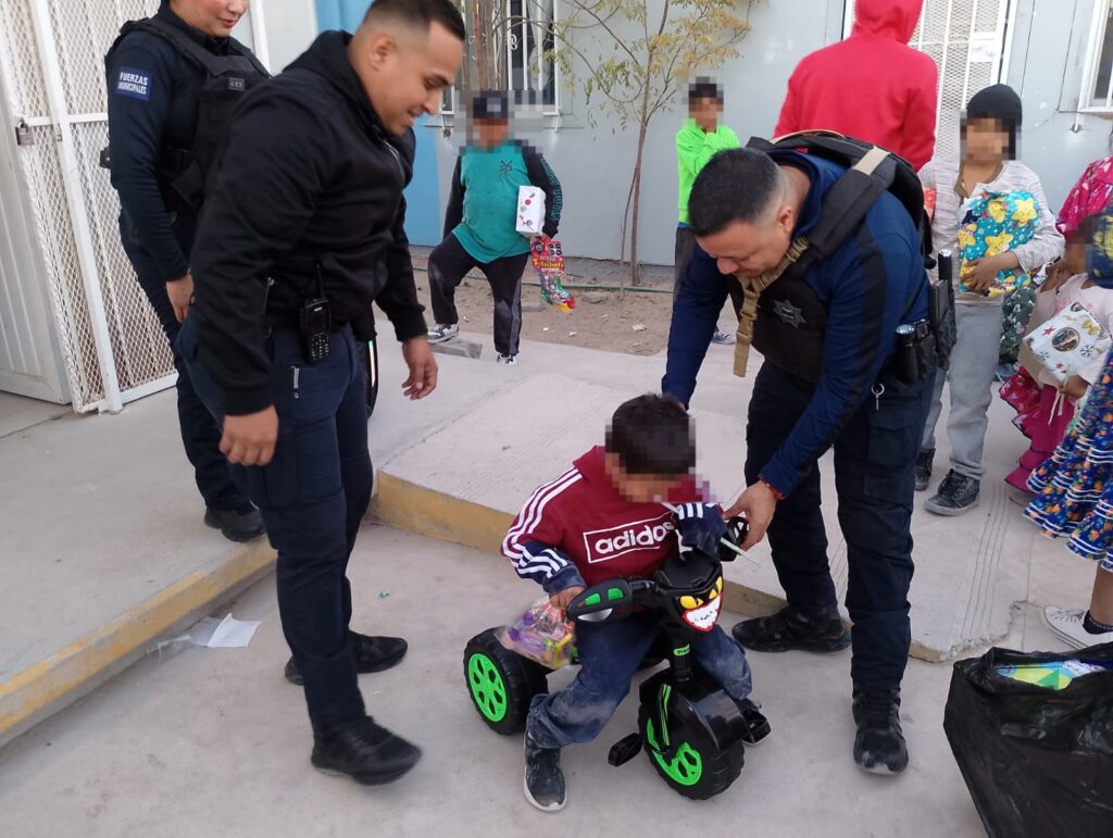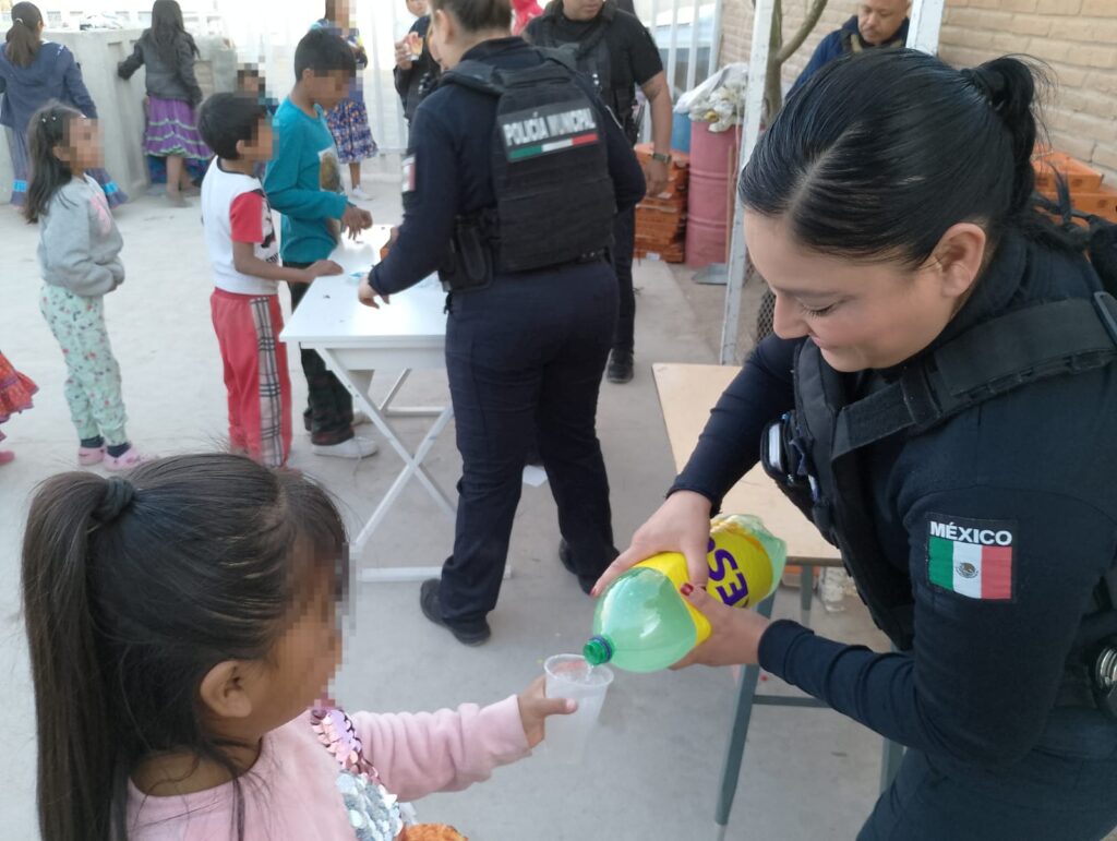 CD. JUAREZ, CHIH.- En un gesto de solidaridad y compromiso social un grupo de mandos de la Secretaría de Seguridad Pública Municipal llevaron a cabo un convivio en beneficio de aproximadamente 120 personas, entre madres de familia y sus hijos que forman parte de la comunidad educativa de la escuela Primaria Indígena Benito Juárez, ubicada en la colonia Tarahumara.