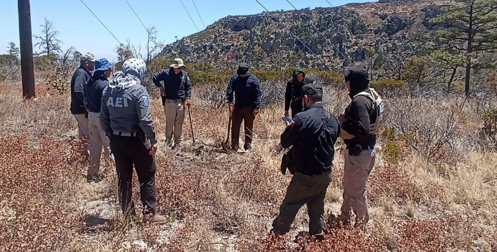 Con el apoyo de Personal de la Agencia Estatal de Investigación (AEI), Peritos y familiares de personas desaparecidas, se inspeccionó de manera pedestre una superficie de cinco mil metros cuadrados.