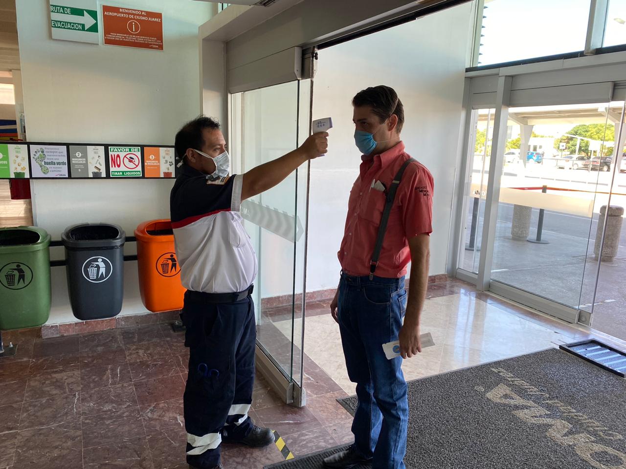 CD. JUAREZ, CHIH.- El Gobierno Municipal a través de la Dirección de Salud mantiene activos los protocolos correspondientes para prevenir el contagio de Coronavirus COVID-19, un ejemplo de ello es que los filtros de revisión instalados en el aeropuerto internacional “Abraham González” y en la Central de Autobuses siguen operando.