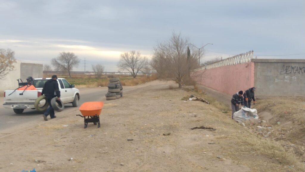 CD. JUAREZ, CHIH.- Como parte de la estrategia del Gobierno Municipal de mejorar el entorno del fraccionamiento Riberas del Bravo, personal de la Dirección de Limpia mantiene las labores de limpieza en el área con base en una calendarización de actividades.