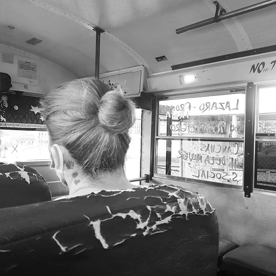 Comenzó a retratar a personas que iban dentro del transporte público en el periodo de mayo a septiembre, pero sin exponer sus rostros. Una forma indirecta de mostrar cómo la sociedad bloquea o evade su responsabilidad ignorando el peligro de la propagación del virus en la actualidad.