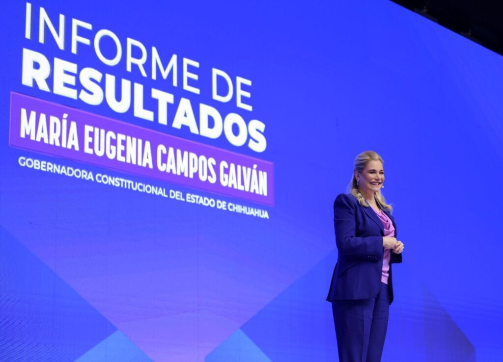 CHIHUAHUA, CHIH.- La gobernadora Maru Campos presentó su 4to Informe de Resultados en el Centro de Convenciones y Exposiciones de la capital, donde anunció que este año se desplegará la mayor inversión anual en infraestructura de la historia del estado, con alrededor de 5 mil millones de pesos (mdp), de los cuales, cerca de mil mdp se ejecutarán en coordinación con los ayuntamientos.
