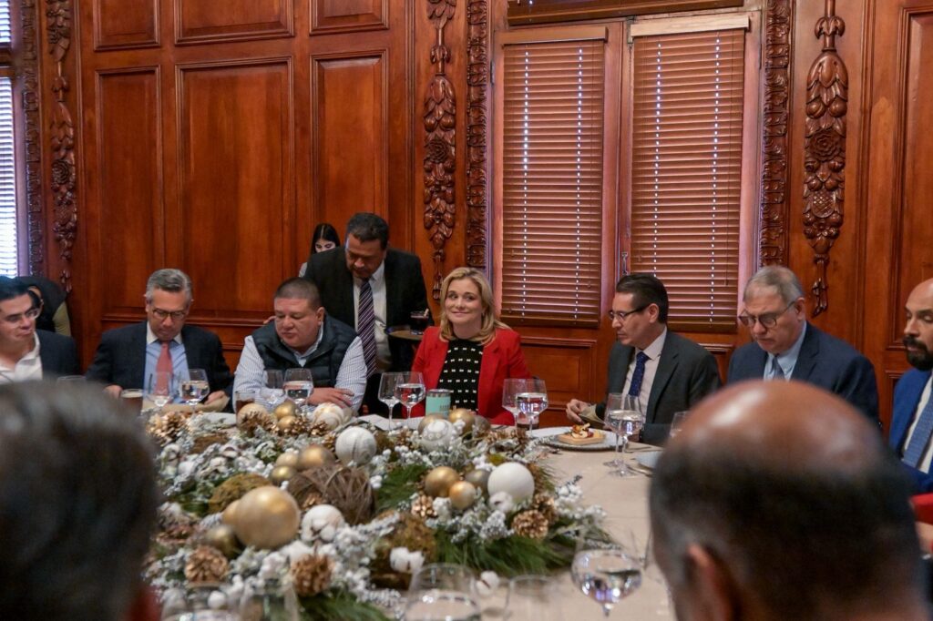 Maru Campos encabeza brindis navideño con miembros de su Gabinete