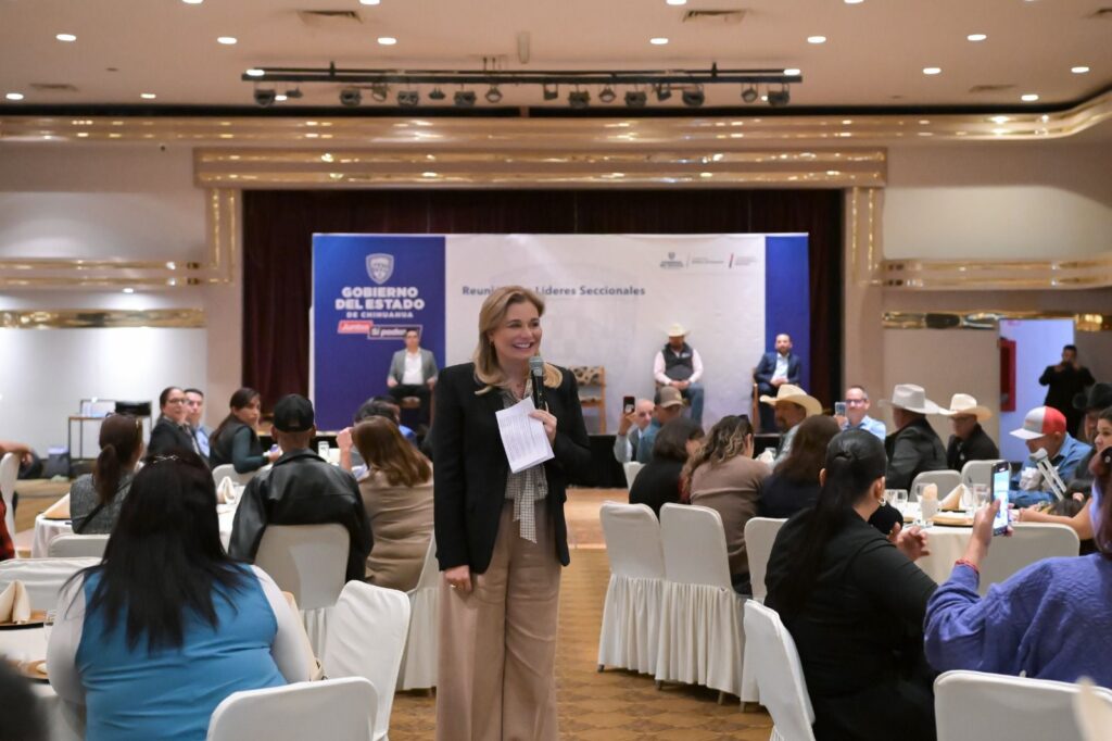 CHIHUAHUA, CHIH.- En un esfuerzo por acercar los servicios de su administración a quienes más lo necesitan, la gobernadora Maru Campos sostuvo un encuentro con más de 75 presidentas y presidentes seccionales electos de toda la entidad, a quienes exhortó a no permitir divisiones y a trabajar unidos para lograr los resultados que la gente se merece.