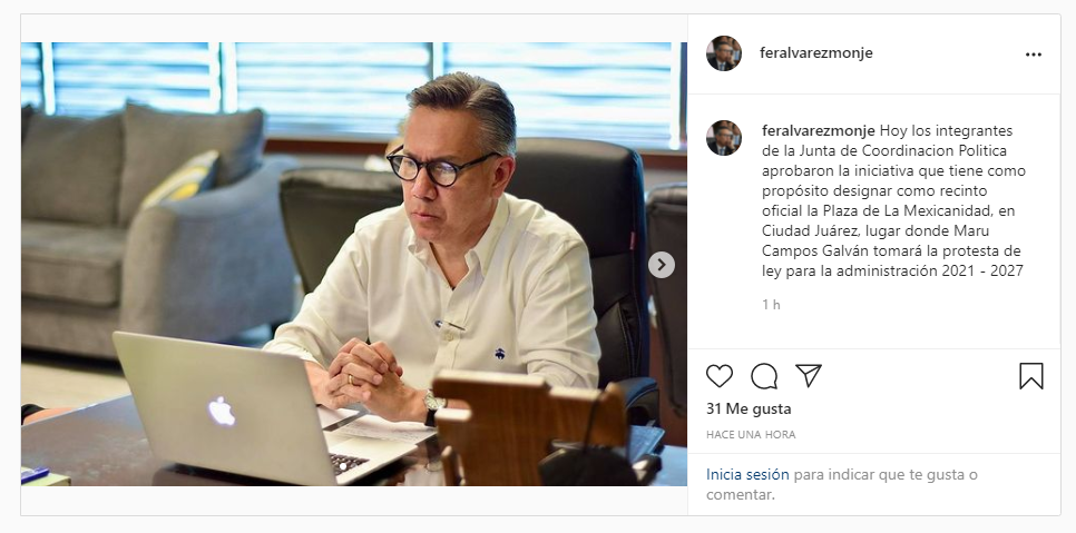 CHIHUAHUA, CHIH.- Los integrantes de la Junta de Coordinación Política, del Congreso del Estado, designa como recinto oficial la Plaza de la Mexicanidad de Cd. Juárez, lugar desde donde donde Maru Campos Galván tomará la protesta de ley para la administración estatal 2021-2027.