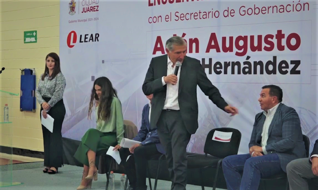 Lo anterior se dio en el marco del encuentro que sostuvo el Secretario de Gobernación con empresarios en la planta Monarca Lear, evento organizado por la diputada Andrea Chávez, Desarrollo Económico y el Gobierno Municipal de Cd. Juárez.