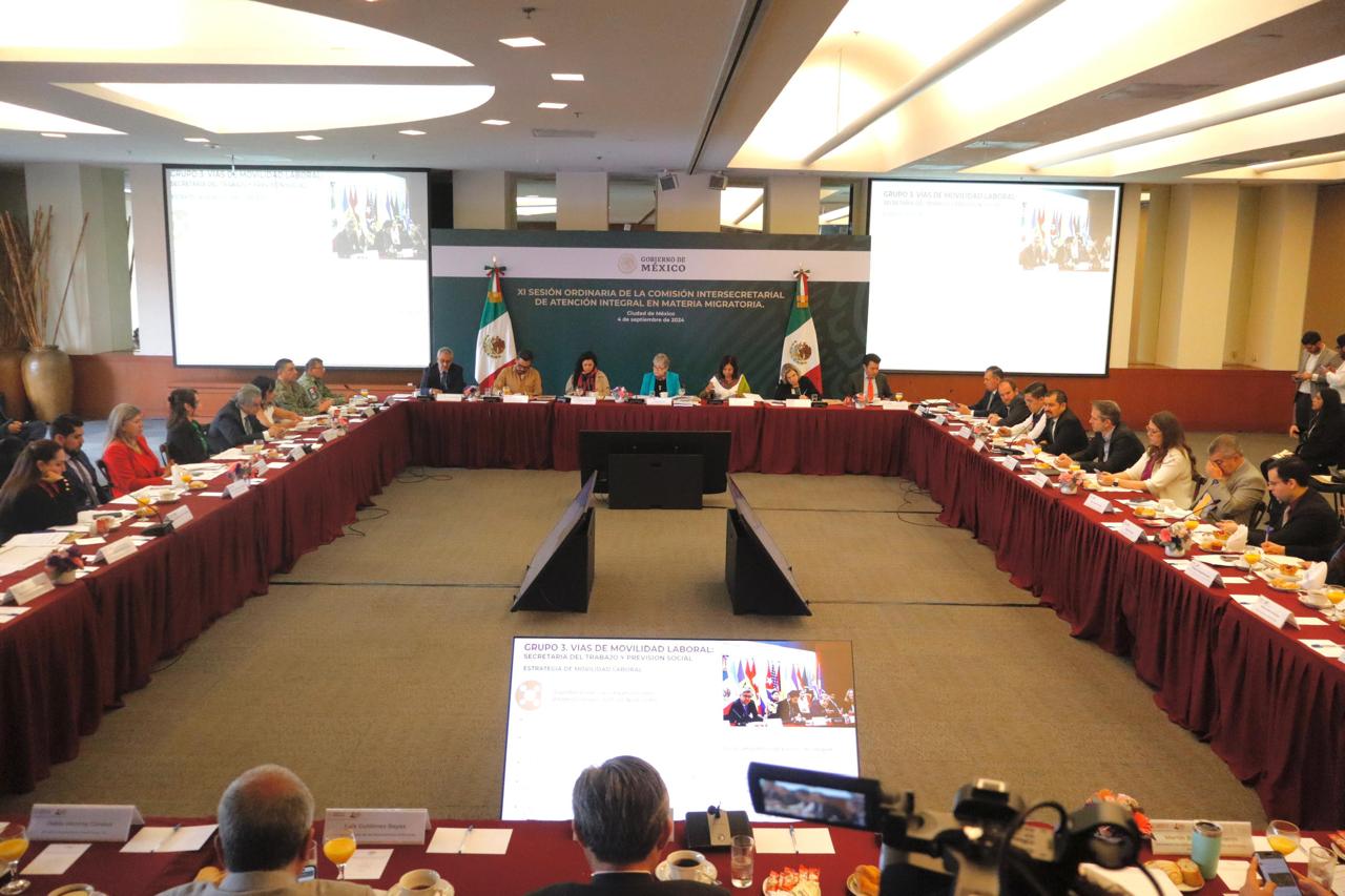 Durante la sesión, las y los titulares de las secretarías e instancias del Gobierno de México que integran los seis grupos de trabajo de la Comisión Intersecretarial presentaron las acciones realizadas en la implementación del Modelo Mexicano de Movilidad Humana.