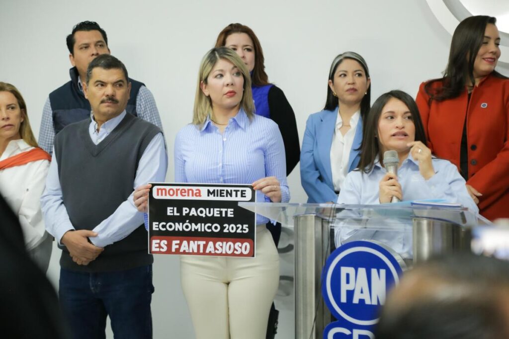 CHIHUAHUA, CHIH.- Encabezados por Daniela Álvarez, presidenta del PAN Chihuahua, legisladores locales y federales del PAN denunciaron como fantasioso el Paquete Económico 2025 del Gobierno Federal, en el que, además, se abandona al estado en la atención de diversas problemáticas.