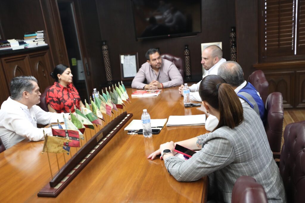 El alcalde recibió en su despacho a Ramiro López Elizalde, subsecretario de Políticas de Salud y Bienestar Poblacional de la Secretaría de Salud del Gobierno de México; Gilberto Baeza Mendoza, Secretario de Salud del Estado de Chihuahua; Adriana Anylú Yáñez Díaz, coordinadora Técnica de la Secretaría de Salud de Chihuahua; Daphne Santana Fernández, directora de Salud Pública Municipal y Rogelio Covarrubias Gil Lamadrid, director del Distrito de Salud del Estado en Ciudad Juárez