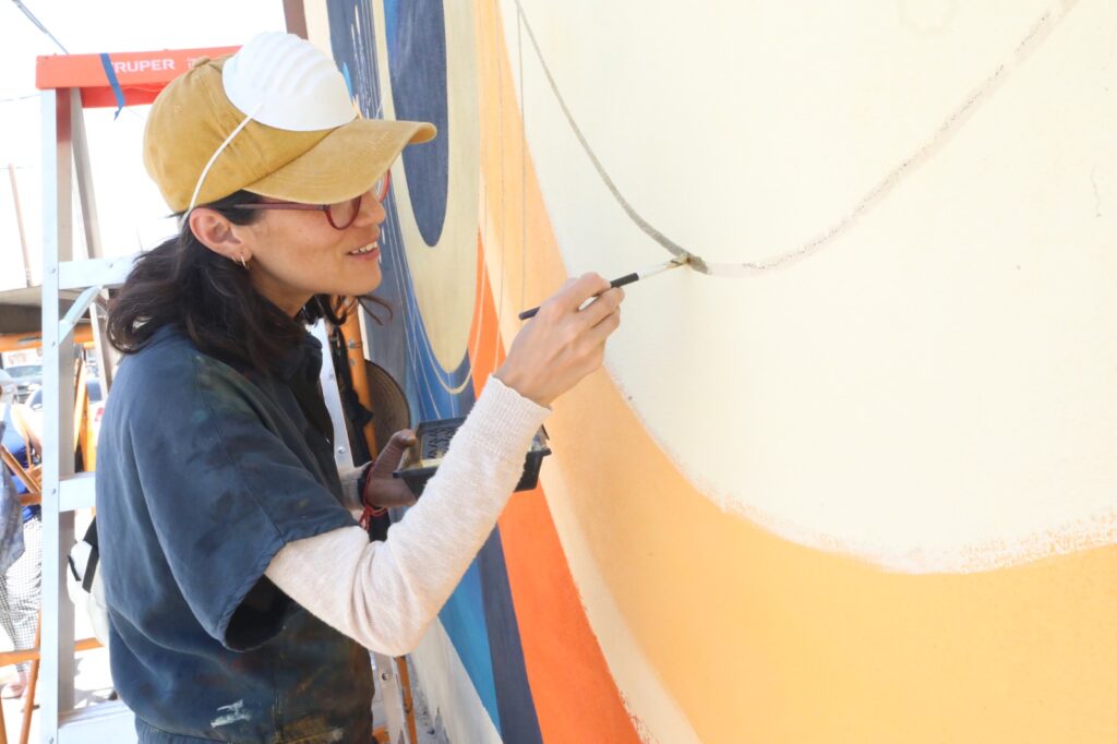 La artista visual es originaria de la Ciudad de México y llegó aquí para dar vida a una enorme pared de la calle Santos Degollado, entre Ugarte y Mariano Samaniego, en el Centro Histórico de la ciudad.