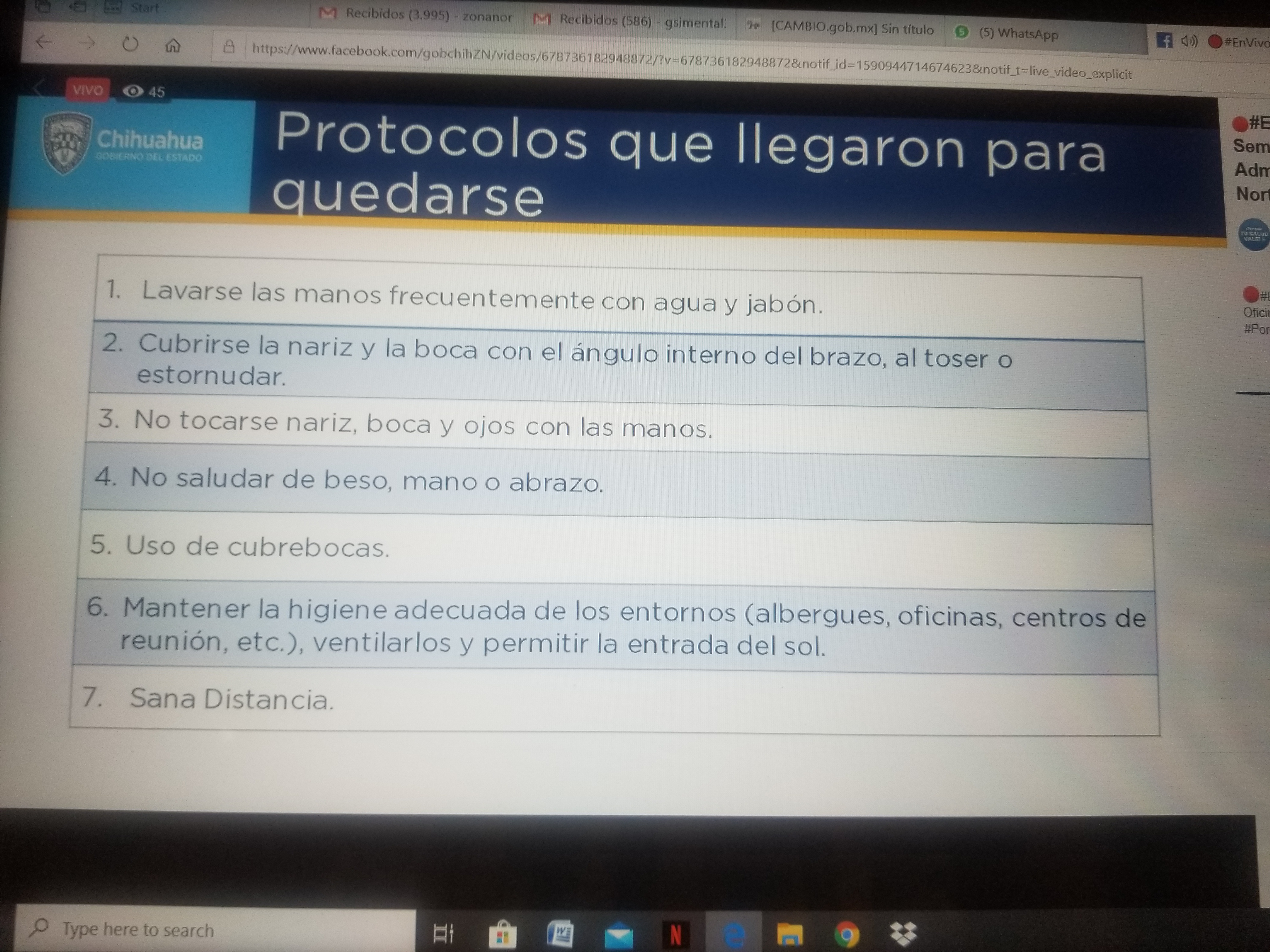 Por último, Dena Torres hizo la invitación a que sigan muy de cerca los programas ofrecidos por el Gobernador del Estado, Javier Corral los días lunes, miércoles y viernes a las 7 de la mañana, donde da indicaciones a todo el Estado sobre cómo actuar en esta situación de contingencia sanitaria.