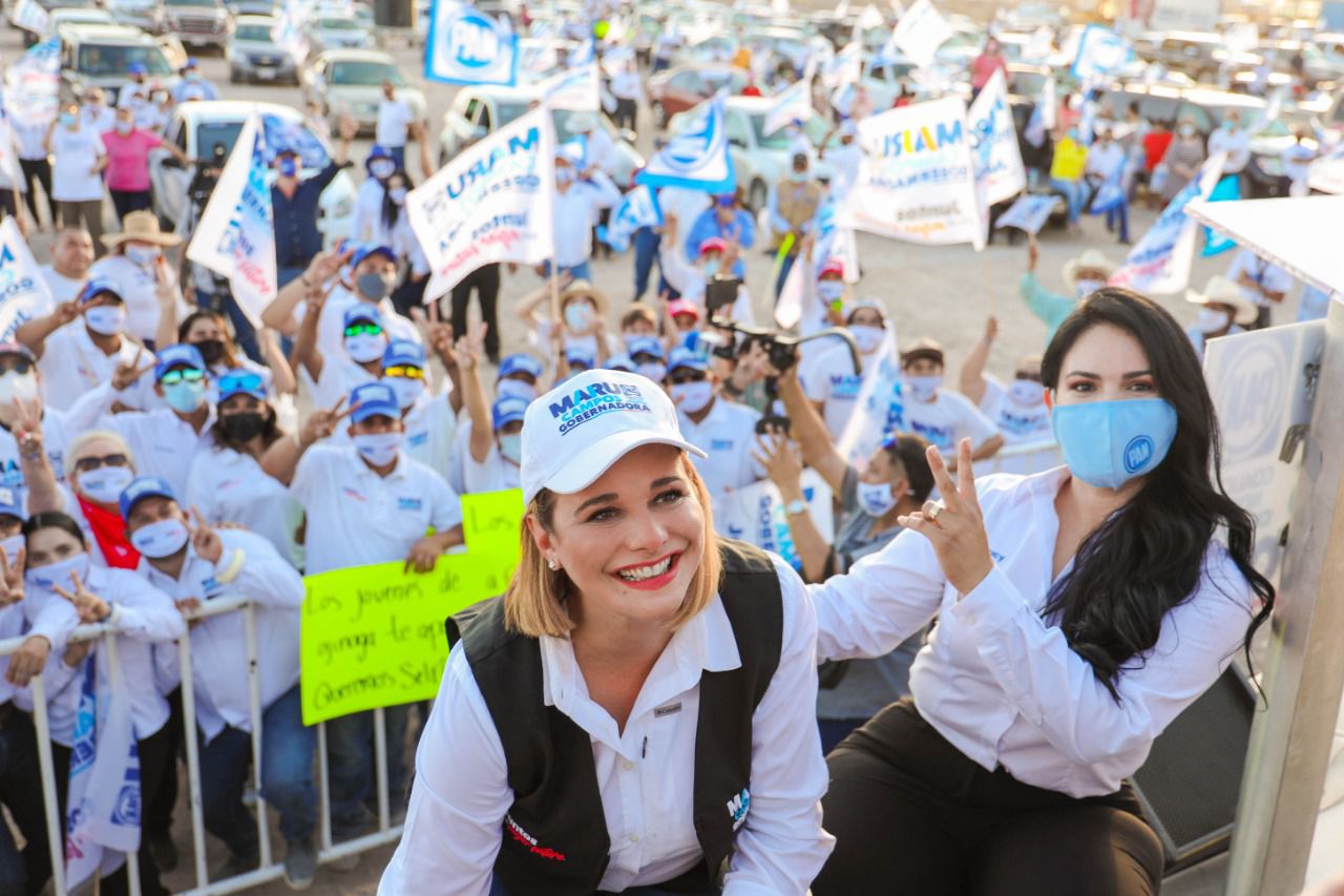 OJINAGA, CHIH.- A pocos días de la elección, la candidata a la gubernatura por la coalición “Nos Une Chihuahua”, Maru Campos, cerró campaña en Ojinaga con un automitin, al cual asistieron miles de personas de la región para acompañar y arropar a la chihuahuense.