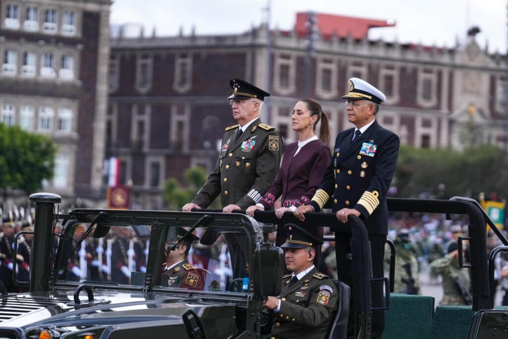 CIUDAD DE MEXICO.-En el Desfile Cívico Militar por el 215 Aniversario de la Independencia y el primero en ser presidido por una mujer, la Presidenta Claudia Sheinbaum Pardo destacó que en México ninguna injerencia es posible gracias a que el pueblo de México conoce su fuerza y su historia.
