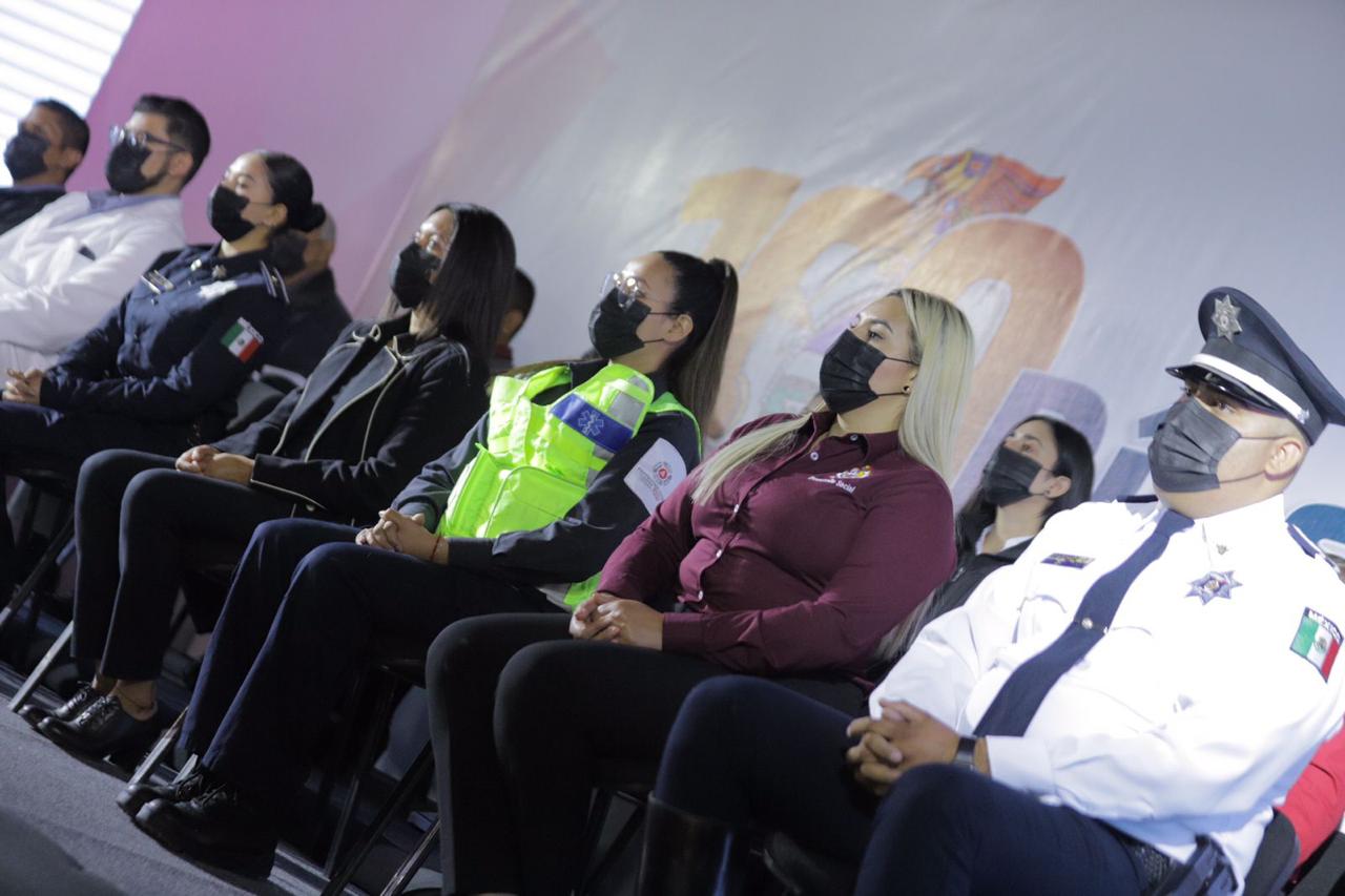 Para reconocer el trabajo de quienes integran el gobierno municipal, Pérez Cuéllar invitó al presídium a servidores públicos de las dependencias municipales que dan atención directa a la población que forman parte de Rescate, Servicios Públicos, de cuadrillas de bacheo, Seguridad Vial, Seguridad Pública, Salud, Tesorería y el Instituto Municipal del Deporte y Cultura Física.
